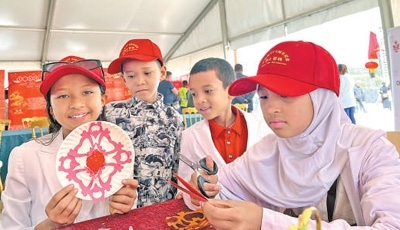 在亞的斯亞貝巴大學孔子學院,當?shù)匦∨笥洋w驗中國剪紙藝術(shù)。