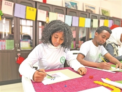 亞的斯亞貝巴大學孔子學院學生正在繪制富有中國元素的美術(shù)作品。