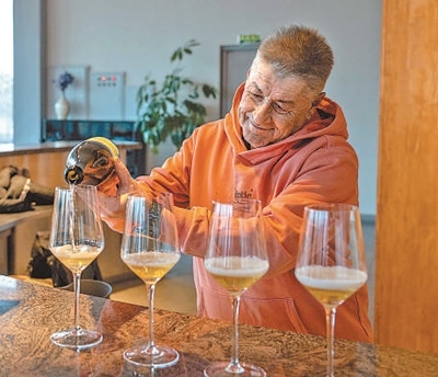 “除了葡萄酒外,我們還不斷拓展釀酒種類。這兩款酒是由我們員工自家種植的大米和蘋果釀制的?!奔贸鰞善烤谱院赖亟榻B道,“它們?cè)谑袌錾虾苁軞g迎,農(nóng)產(chǎn)品附加值提高了,員工們的收入更多了,真正實(shí)現(xiàn)了產(chǎn)業(yè)與生活的緊密結(jié)合。”