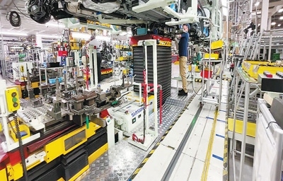 德國(guó)一家知名汽車制造商車間內(nèi),一個(gè)個(gè)明黃色的超大“行李箱”正在奔走忙碌。它們自主跟隨車身,時(shí)刻與其保持同步,并將發(fā)動(dòng)機(jī)、后橋舉起,對(duì)接底盤,完成拼合……