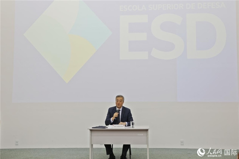 中國駐阿爾及利亞大使董廣利(右一)、阿爾及爾第二大學(xué)校長拉赫曼尼(中)參加活動(dòng)并致辭。人民網(wǎng)記者 郝瑞敏攝