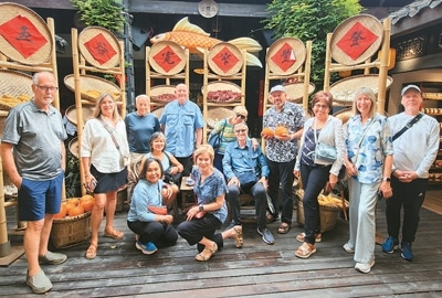 美國(guó)游客在四川成都寬窄巷子游覽。