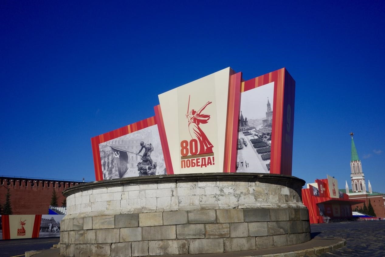 當(dāng)?shù)貢r(shí)間5月6日,莫斯科盧比揚(yáng)卡廣場(chǎng)布置紀(jì)念蘇聯(lián)偉大衛(wèi)國戰(zhàn)爭(zhēng)勝利80周年的標(biāo)語。鄺西曦 攝