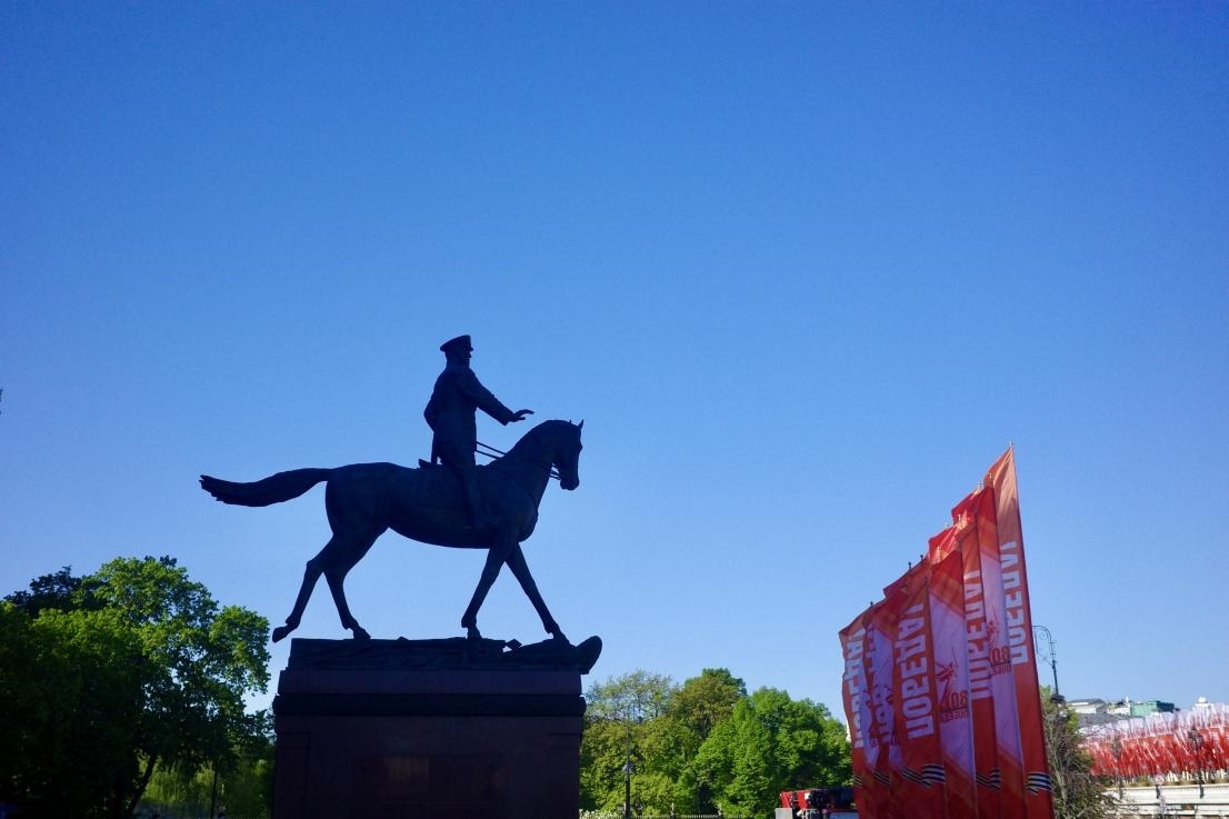 當(dāng)?shù)貢r(shí)間5月6日,朱可夫元帥雕塑。這一形象原型來自1945年的勝利日閱兵,當(dāng)時(shí)朱可夫騎馬行進(jìn)在紅場(chǎng)。 劉少華 攝