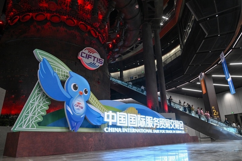 9月10日,觀眾從2025年中國國際服務(wù)貿(mào)易交易會(huì)標(biāo)識(shí)前經(jīng)過。