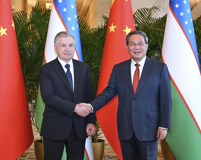 9月2日上午,國務院總理李強在北京釣魚臺國賓館會見來華出席2025年上海合作組織峰會和紀念中國人民抗日戰(zhàn)爭暨世界反法西斯戰(zhàn)爭勝利80周年活動的烏茲別克斯坦總統(tǒng)米爾濟約耶夫。