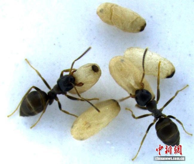 工蟻與蛹(圖片來自Barbara Leyre/奧地利科技學院)。施普林格·自然 供圖