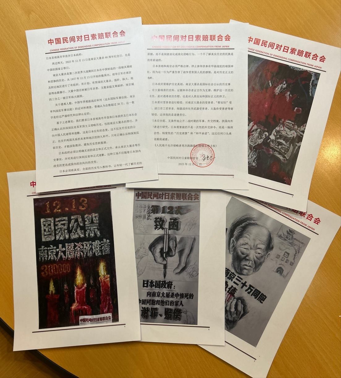 南京大屠殺88周年之際,中國(guó)民間對(duì)日索賠聯(lián)合會(huì)通過(guò)日本駐華大使館,致信日本政府及首相高市早苗,要求就南京大屠殺的罪行向中國(guó)人民謝罪并賠償。