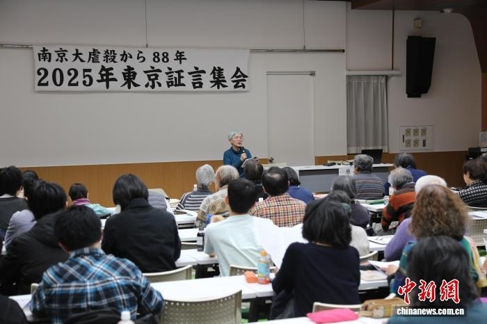中新網(wǎng)東京12月13日電 (記者 朱晨曦)今年是南京大屠殺慘案發(fā)生88周年,今年12月13日是第十二個(gè)南京大屠殺死難者國(guó)家公祭日。11日晚,日本民間團(tuán)體“No More南京之會(huì)”在日本東京全水道會(huì)館舉行集會(huì),上百名參加者通過證詞與影像記錄,重新面對(duì)那段戰(zhàn)爭(zhēng)慘劇。