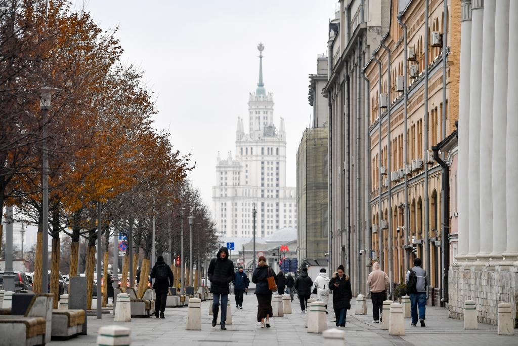 11月11日,行人走在俄羅斯首都莫斯科街頭。新華社發(fā)(亞歷山大攝)