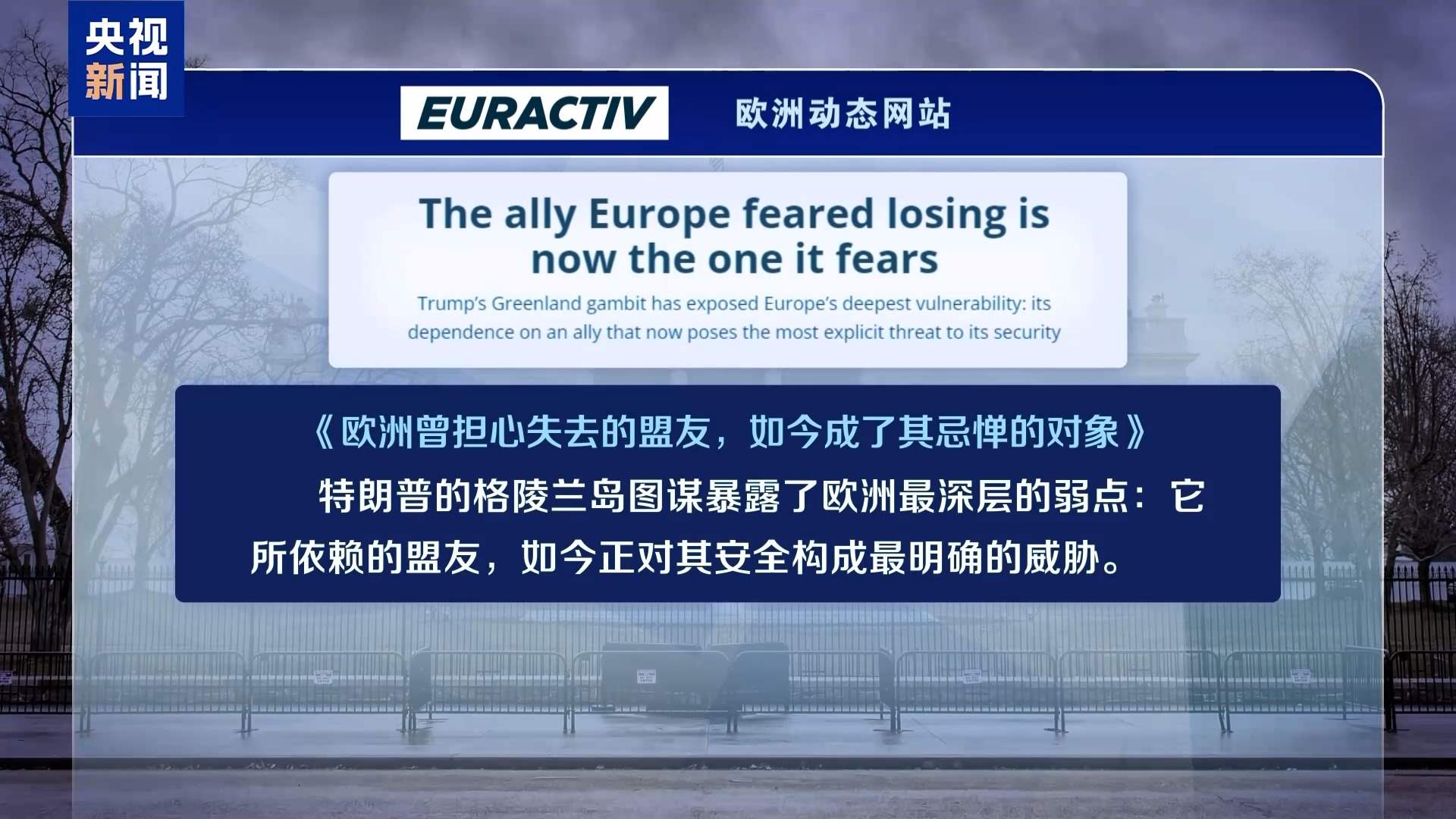 歐洲動態(tài)網(wǎng)站6日以《歐洲曾擔(dān)心失去的盟友,如今成了其忌憚的對象》為題評論說,“特朗普的格陵蘭島圖謀暴露了歐洲最深層的弱點:它所依賴的盟友,如今正對其安全構(gòu)成最明確的威脅?!蔽恼逻€提醒說,我們正進(jìn)入一個“強權(quán)即公理”的新世界——而歐洲人對此毫無準(zhǔn)備?;蛟S,格陵蘭島可能帶來的羞辱,將促使歐洲人反思這一現(xiàn)狀,并最終采取行動改變局面。