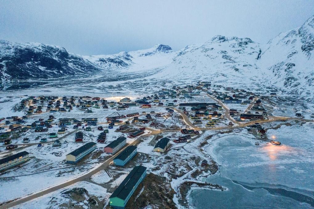 這是2025年3月21日拍攝的丹麥自治領(lǐng)地格陵蘭島納爾薩克鎮(zhèn)(無人機(jī)照片)。新華社記者彭子洋攝
