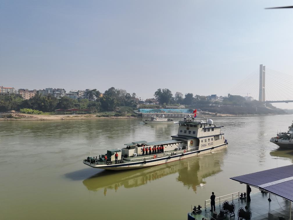聯(lián)合巡邏執(zhí)法行動圓滿結(jié)束,中方執(zhí)法艇順利返回,正在有序靠泊西雙版納景哈警務(wù)碼頭。(云南省公安廳水上巡邏總隊供圖)
