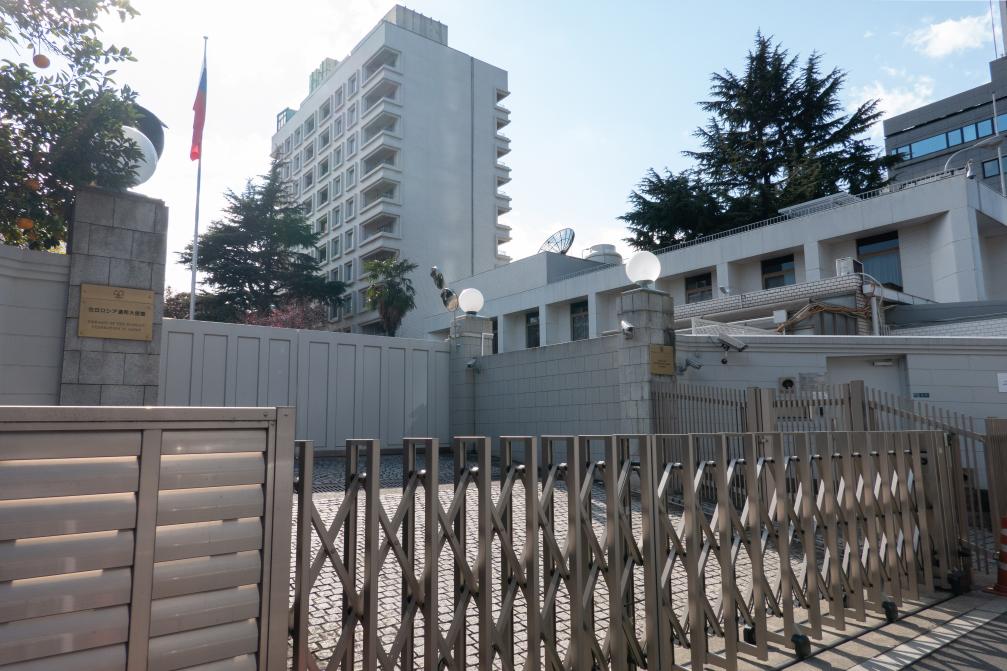 這是2022年2月23日在日本東京拍攝的俄羅斯駐日本大使館。新華社記者 張笑宇 攝