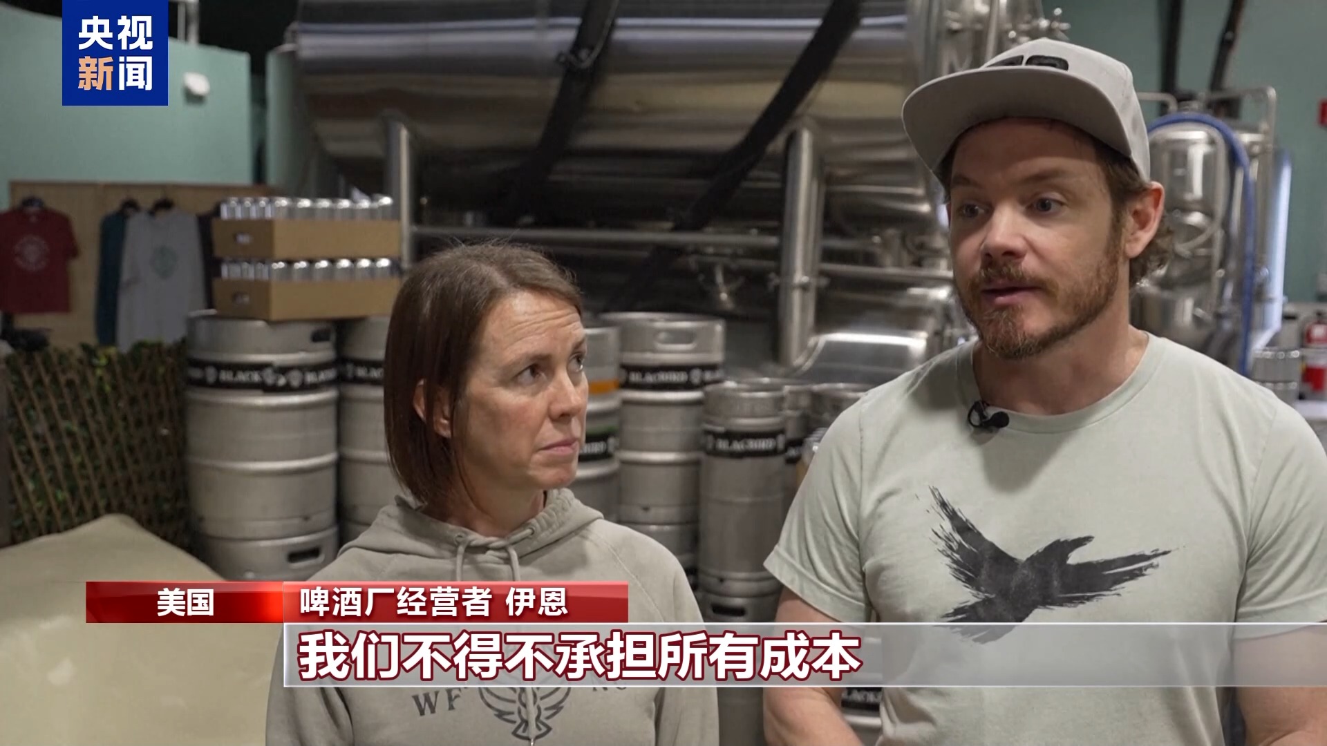伊恩和哈莫妮在北卡羅來納州韋克福里斯特經(jīng)營一家啤酒廠。他們表示,啤酒廠大約50%的原料依賴進口,到目前為止,他們一直在自行承擔這些額外的成本。