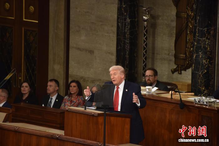 當(dāng)?shù)貢r(shí)間2月24日晚,美國(guó)總統(tǒng)特朗普在國(guó)會(huì)參眾兩院聯(lián)席會(huì)議上發(fā)表國(guó)情咨文講話,聚焦經(jīng)濟(jì)、移民等議題。這是特朗普在本總統(tǒng)任期內(nèi)首次發(fā)表國(guó)情咨文。 記者 沙晗汀 攝