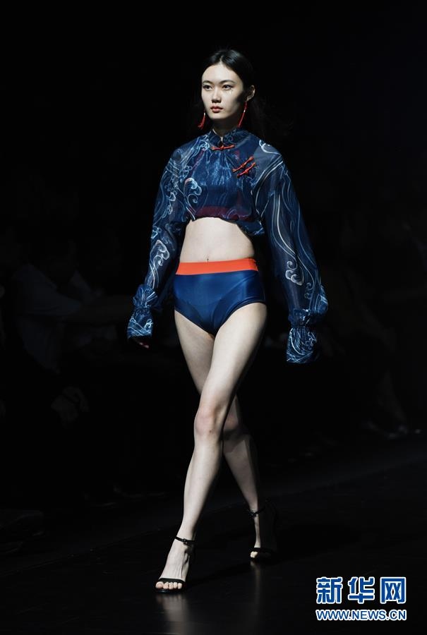 9月1日,模特在“泳享青春不負未來”第五屆互聯(lián)網(wǎng)時尚設計大賽決賽上展示服裝。當晚,以“新銳力量——原力覺醒”為主題的東方時尚季·第20屆中國(青島)國際時裝周落下帷幕。新華社記者李紫恒攝