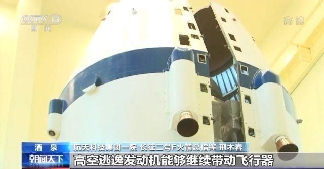 航天科技集團一院長征二號F火箭總指揮 荊木春:飛行到120秒的時候,就把逃逸塔拋掉了,這個時候如果再需要進行逃逸,我們就在整流罩上又裝了4臺叫高空逃逸發(fā)動機。出現(xiàn)故障的話,高空逃逸發(fā)動機能夠繼續(xù)帶動飛行器脫離故障火箭。