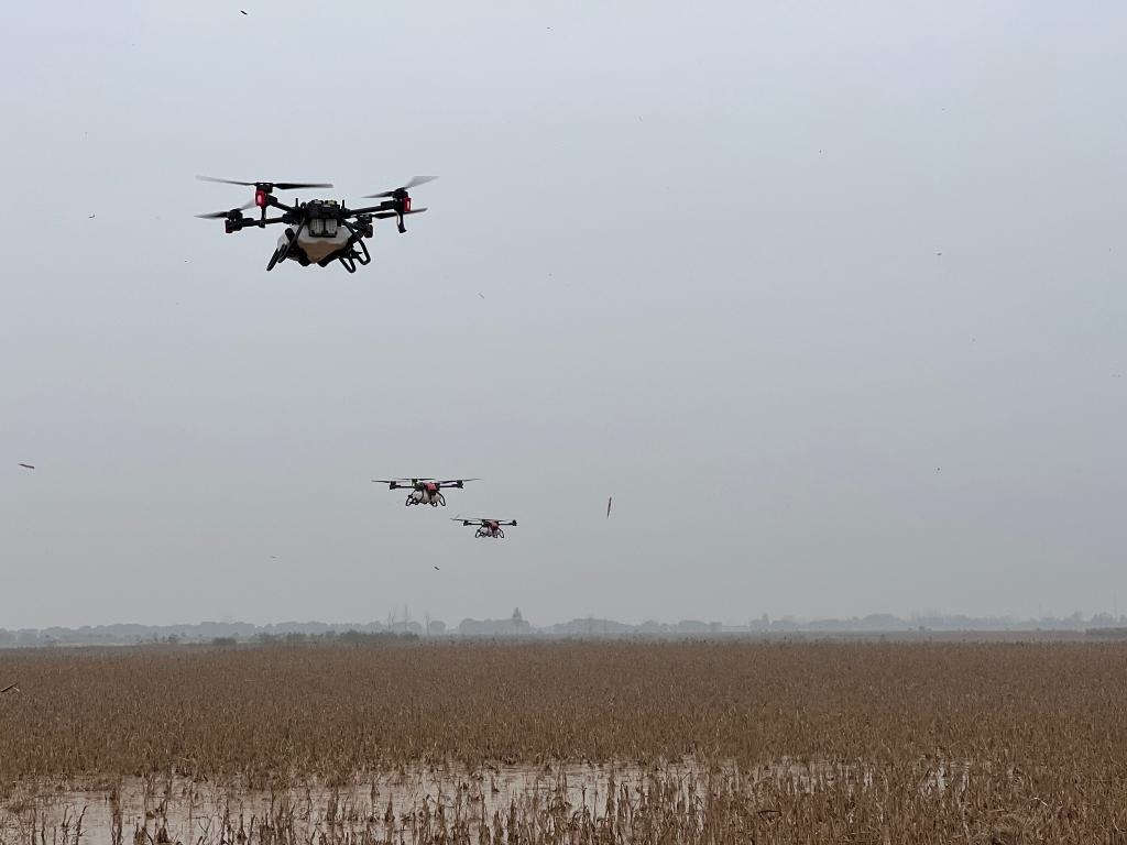 “地不凍,只管種。”石宇峰說,無人機(jī)的快速撒播可以讓種子在土地上凍前及時入土,而且播撒均勻,省時省力,一架無人機(jī)一天可以飛播300畝以上,確保小麥及時足額足面積播種。