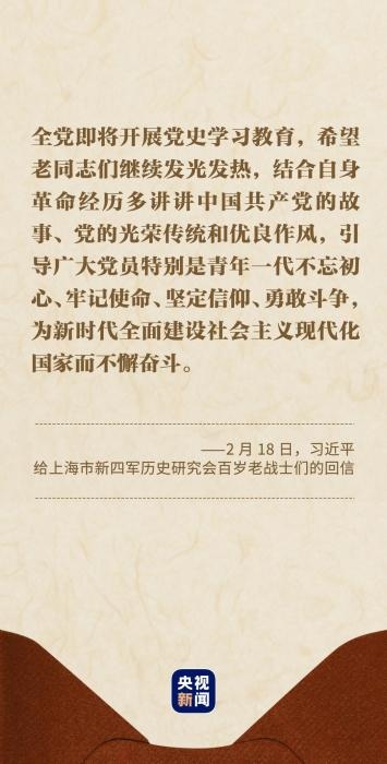 習(xí)近平總書記在回信中說:“你們青年時(shí)代就投身革命,為黨和人民事業(yè)英勇奮斗,期頤之年仍心系黨史宣傳教育,深厚的愛黨之情令人感佩?!?/p>