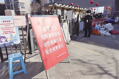 2月23日上午,通州區(qū)武夷花園月季園門前擺放著“前方管控區(qū)域”的告示牌。 新京報(bào)記者 王子誠 攝