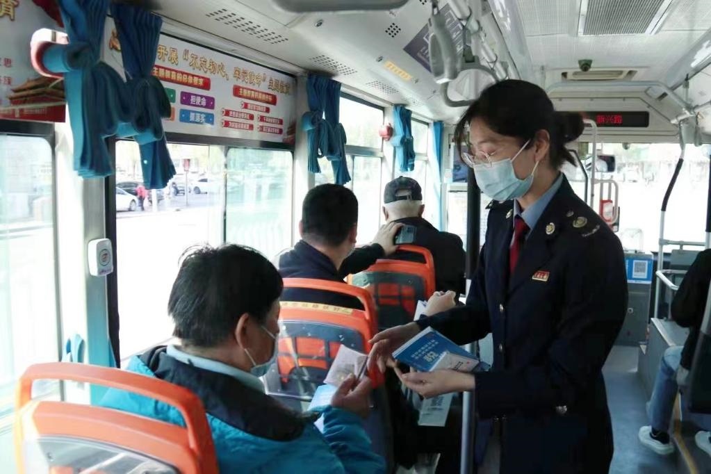 天津市稅務(wù)局第一稽查局組織業(yè)務(wù)骨干在公交車上進行稅法宣傳。受訪者供圖