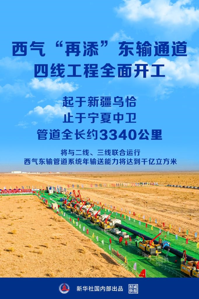 國(guó)家管網(wǎng)集團(tuán)西氣東輸四線工程28日正式開工,工程起于新疆烏恰縣,止于寧夏中衛(wèi)市,管道全長(zhǎng)約3340公里。