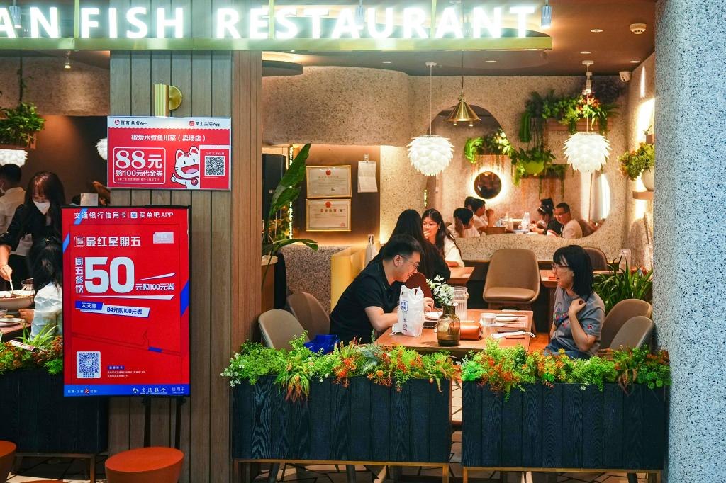 2022年5月28日,市民在長春市一家餐廳內(nèi)用餐。自這一天零時(shí)起,長春市各類生產(chǎn)經(jīng)營主體全面恢復(fù)營業(yè)。新華社記者許暢攝
