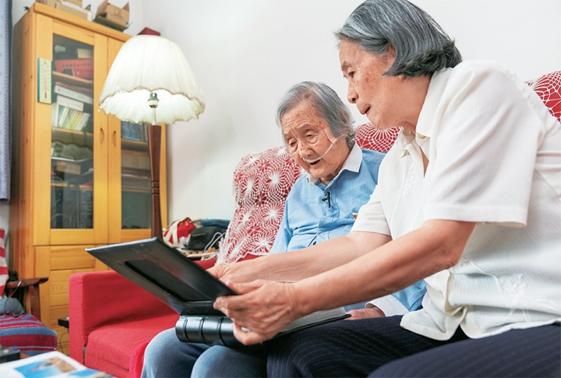 圖為2021年6月23日,在北京的家中,瞿獨伊(左)和女兒李曉云向記者展示家人的相冊。 新華社記者 才揚/攝
