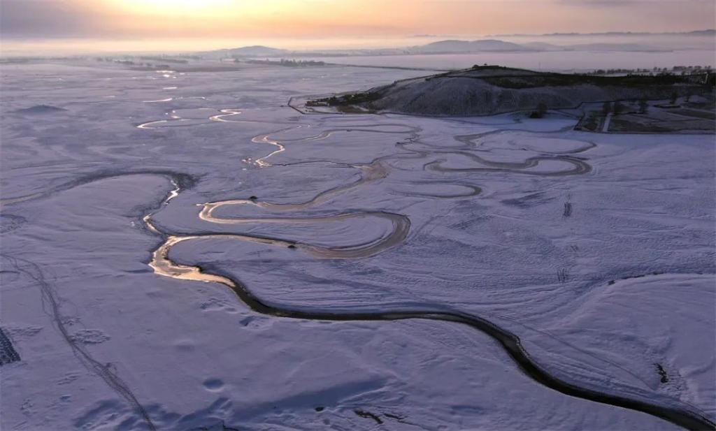 這是位于張家口市沽源縣的冬季閃電河濕地冰雪風(fēng)光(2021年3月13日攝,無(wú)人機(jī)照片)。新華社發(fā)