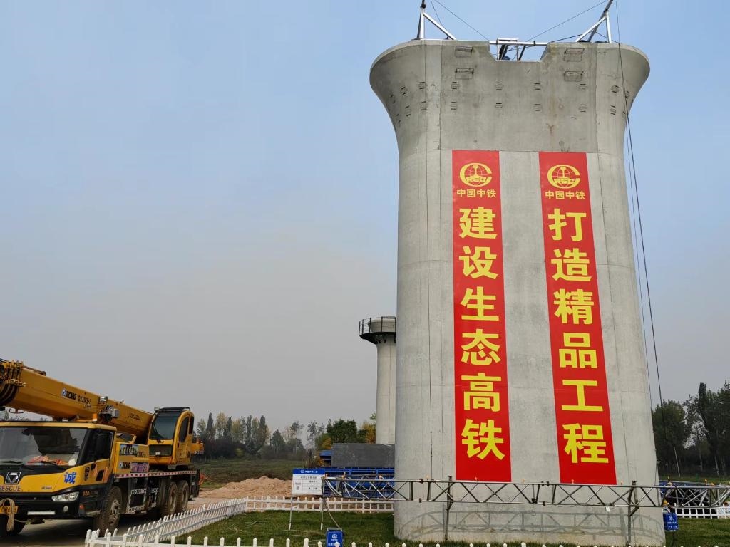 西安浐河之畔,西康高鐵建設(shè)現(xiàn)場。近處,裝運(yùn)設(shè)備的卡車往來穿梭;遠(yuǎn)處,一座座高鐵橋墩已現(xiàn)雛形。