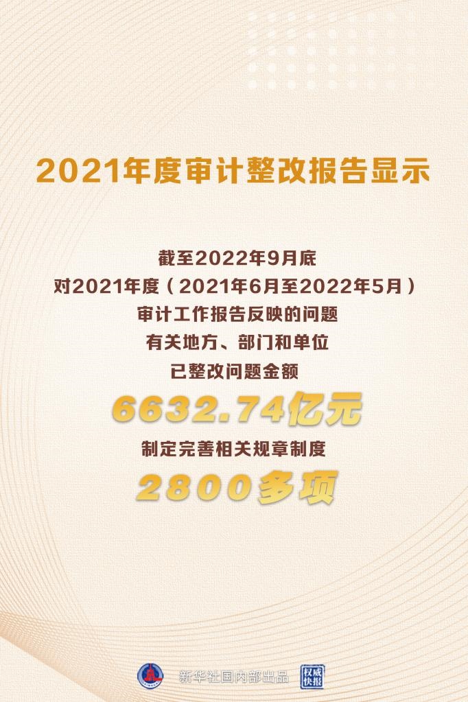 新華社北京12月28日電(記者鄒多為)報(bào)告顯示,截至2022年9月底,對于2021年度(2021年6月至2022年5月)審計(jì)工作報(bào)告反映的問題,有關(guān)地方、部門和單位已整改問題金額6632.74億元,制定完善相關(guān)規(guī)章制度2800多項(xiàng),追責(zé)問責(zé)1.4萬人,糾治了一些阻礙改革發(fā)展和長期未解決的頑瘴痼疾。