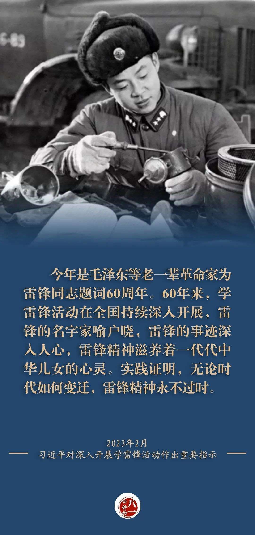 黨的十八大以來(lái),習(xí)近平總書記對(duì)弘揚(yáng)雷鋒精神作出一系列重要論述,深刻指出“雷鋒是時(shí)代的楷模,雷鋒精神是永恒的”“雷鋒精神,人人可學(xué);奉獻(xiàn)愛(ài)心,處處可為”。