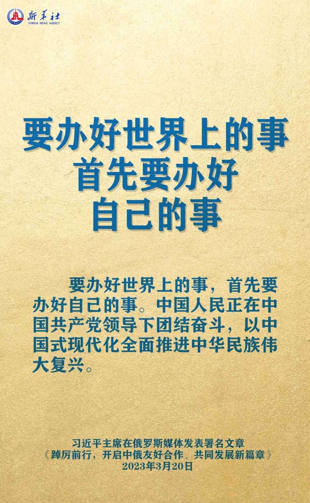 3月20日,在赴莫斯科對俄羅斯聯(lián)邦進行國事訪問之際,國家主席習近平在《俄羅斯報》和俄新社網(wǎng)站發(fā)表題為《踔厲前行,開啟中俄友好合作、共同發(fā)展新篇章》的署名文章。