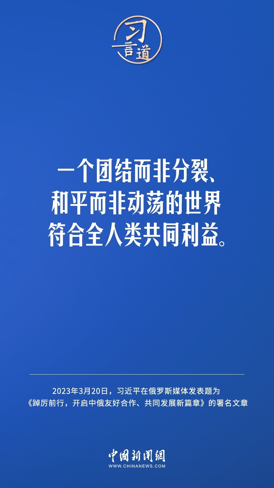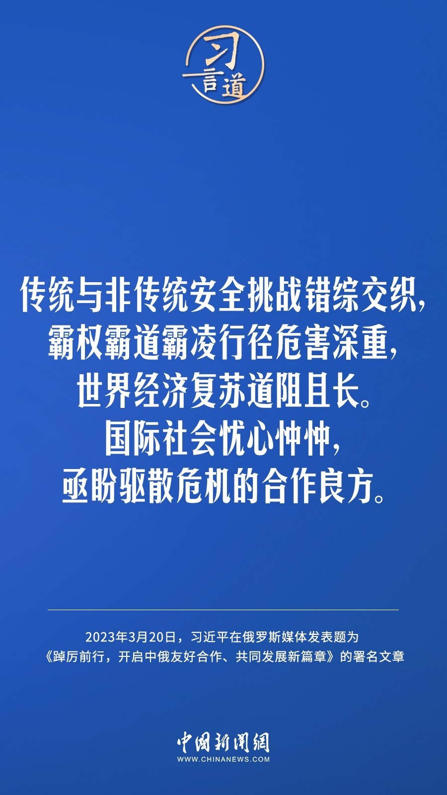 3月20日,在赴莫斯科對俄羅斯聯(lián)邦進行國事訪問之際,國家主席習(xí)近平在《俄羅斯報》和俄新社網(wǎng)站發(fā)表題為《踔厲前行,開啟中俄友好合作、共同發(fā)展新篇章》的署名文章。習(xí)近平指出——