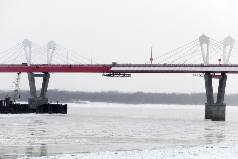 ↑這是中俄首座跨黑龍江公路大橋黑河-布拉戈維申斯克公路橋。這座大橋是兩國元首共同關(guān)心推動的重大跨境基礎(chǔ)設(shè)施項目,它的開通在中國東北地區(qū)和俄羅斯遠(yuǎn)東地區(qū)之間開辟新的國際運輸通道,成為中俄跨境互聯(lián)互通建設(shè)的標(biāo)志。