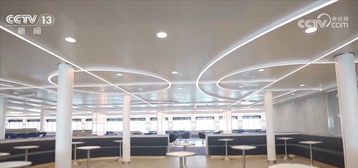 中國船舶集團廣船國際副總經(jīng)理 周旭輝:這個船有7000平方米的公共活動區(qū)域,所有的裝修材料100%國產(chǎn)化,對本土的經(jīng)濟配套有很大的拉動作用。