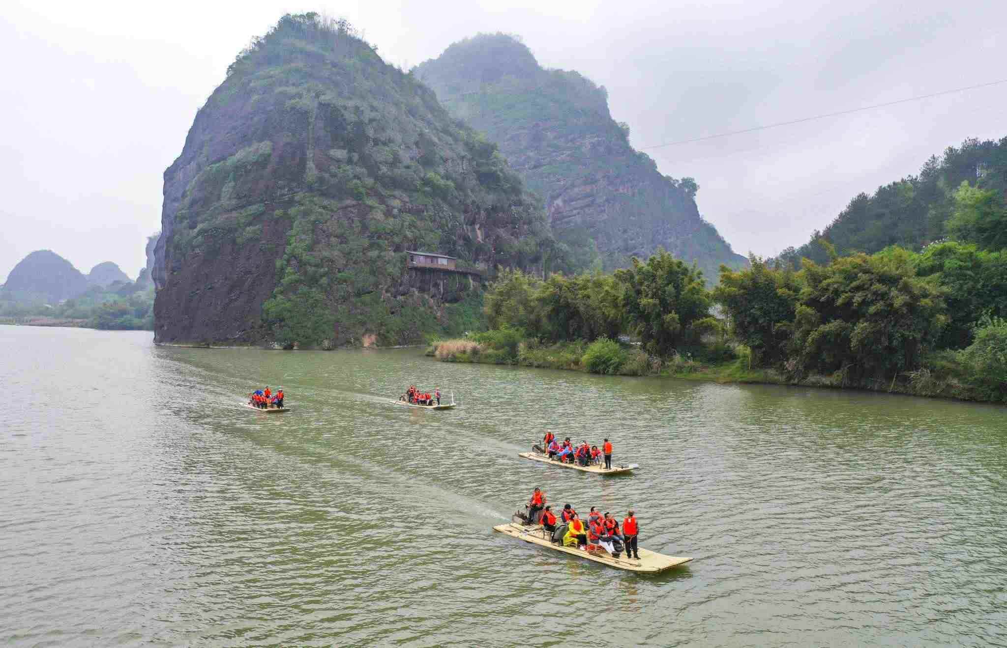 江西鷹潭:游客乘坐竹筏觀光賞景