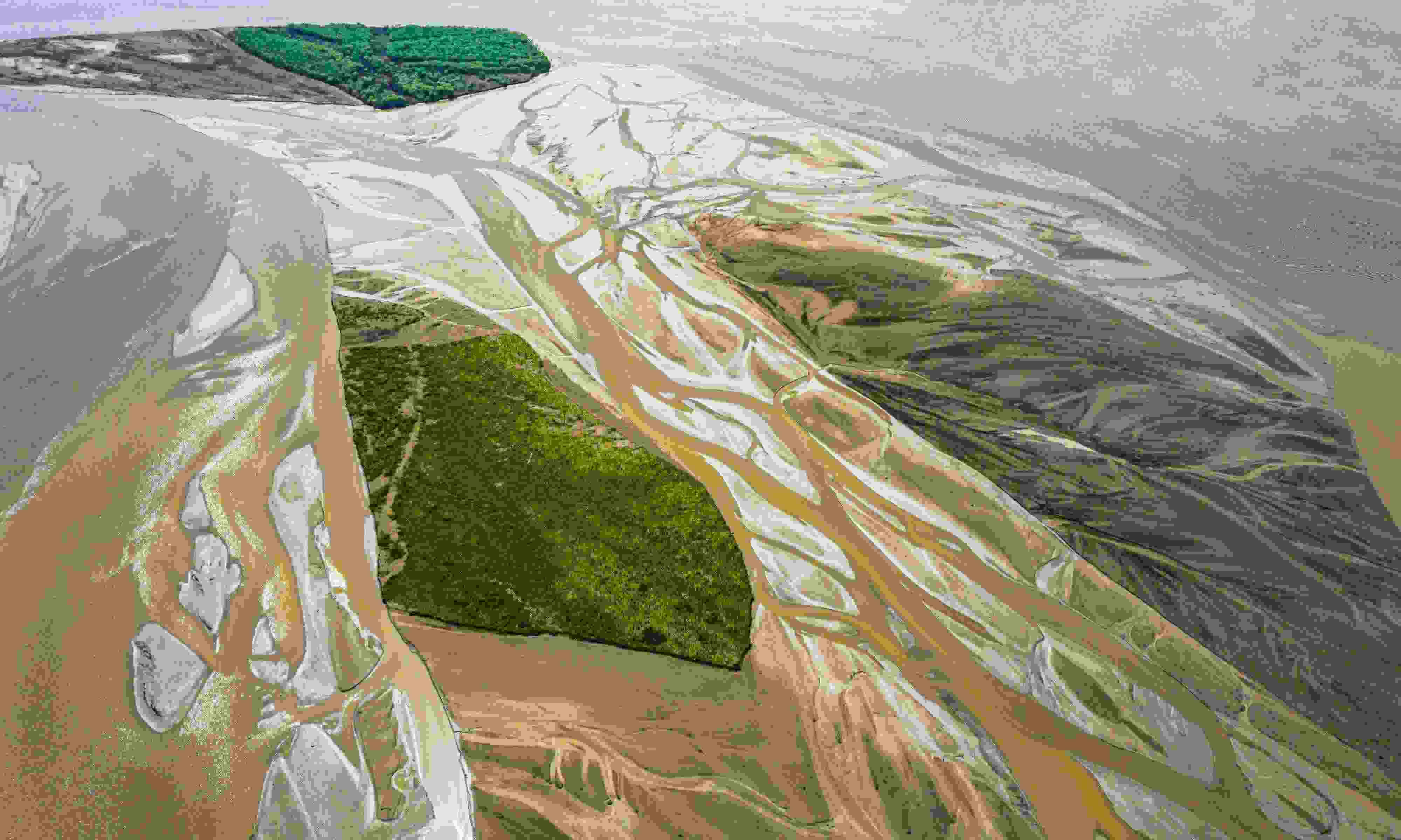 4月16日,山西運城,由于黃河上游降雨和庫區(qū)泄水水量增加,黃河永濟段河床在水流沖刷下河汊縱橫,高空俯瞰宛若“大地血脈”。 視覺中國