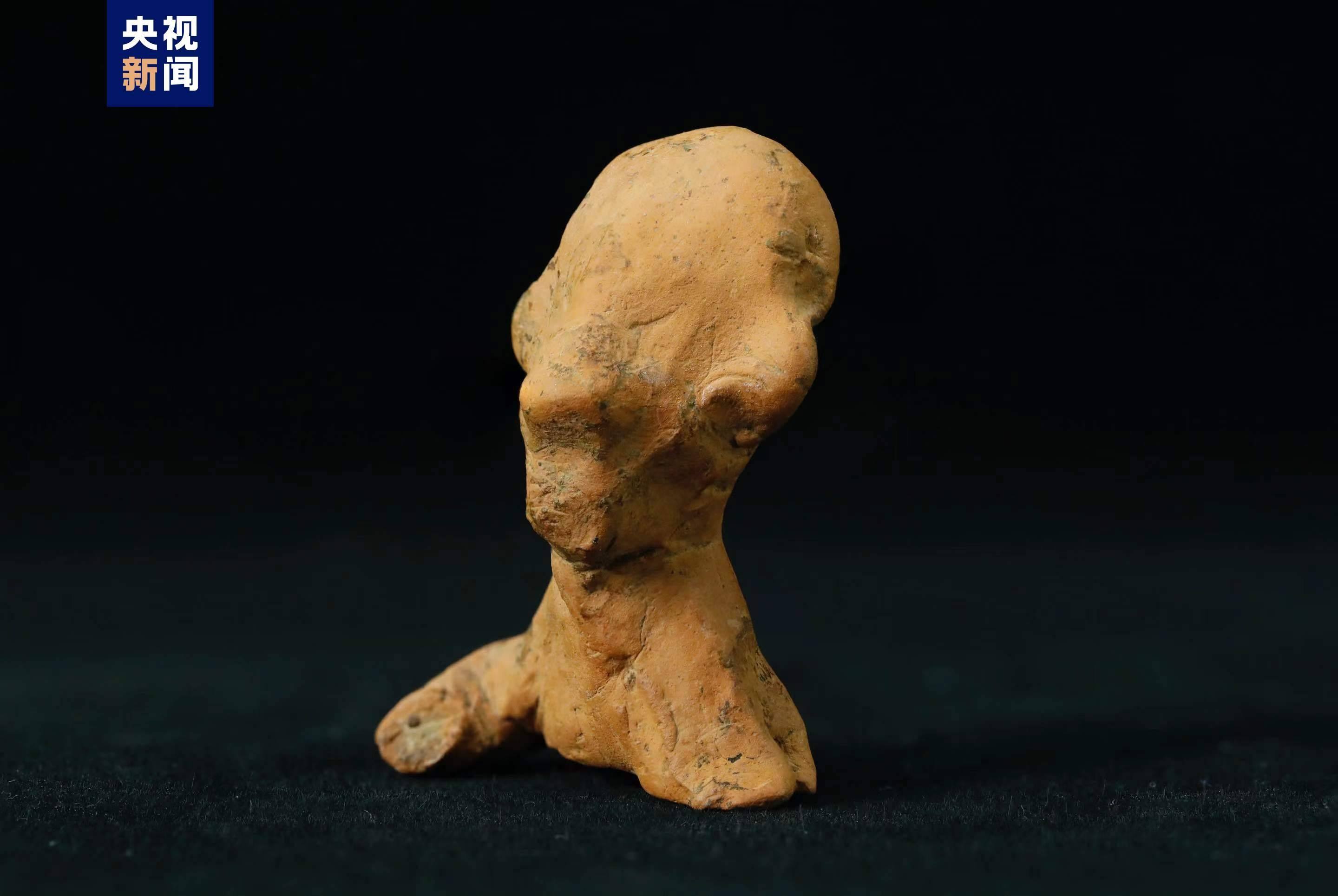 該陶塑人像出土于石家河三房灣遺址地層,距今約4000年。出土?xí)r有殘缺,表面有附著物。文物修復(fù)專(zhuān)家在觀察陶塑上是否有一些遺留痕跡時(shí),發(fā)現(xiàn)了疑似指紋痕跡。