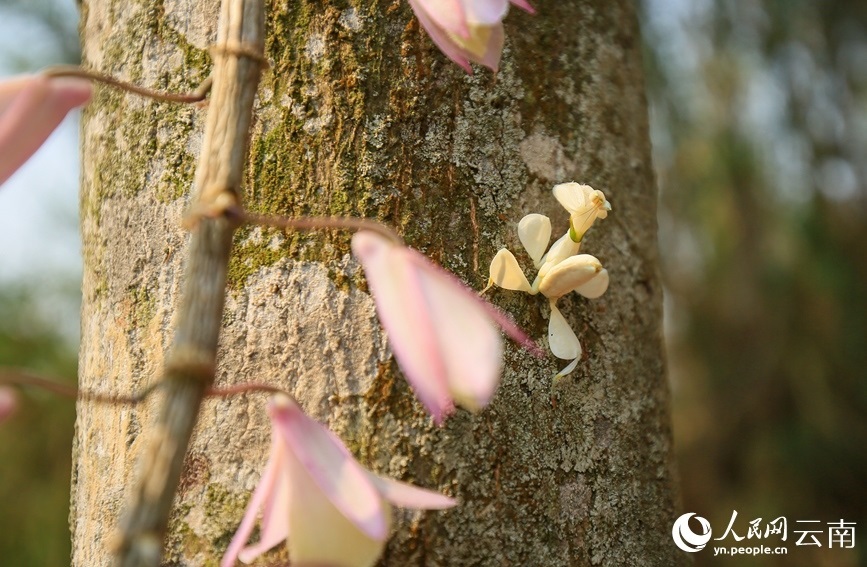 寧洱縣同心鎮(zhèn)林業(yè)和草原服務(wù)中心主任楊夢醒介紹,經(jīng)鑒定,這只白色的蟲子是昆蟲綱花螳科的一種動物,名為蘭花螳螂,是螳螂目中最為漂亮的一種,比較稀有?!拔覀兺ㄟ^查閱資料發(fā)現(xiàn),蘭花螳螂在寧洱縣并無記錄,這次是首次發(fā)現(xiàn)?!?