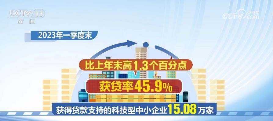 2023年一季度末,獲得貸款支持的科技型中小企業(yè)15.08萬家,獲貸率45.9%,比上年末高1.3個百分點(diǎn)??萍夹椭行∑髽I(yè)貸款余額1.76萬億元,同比增長25.2%,比上年末高0.9個百分點(diǎn)。