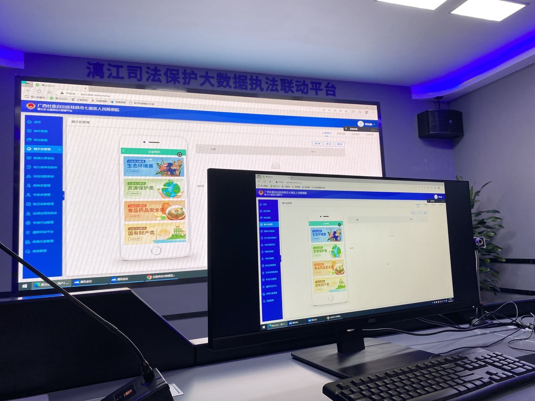 在桂林市七星區(qū)人民檢察院記者看到,漓江司法保護(hù)大數(shù)據(jù)聯(lián)動執(zhí)法中心的大屏幕上,漓江水域事實(shí)情況清晰可見,檢察公益訴訟大數(shù)據(jù)一覽無余,綜合執(zhí)法大數(shù)據(jù)統(tǒng)一匯總在了這里。