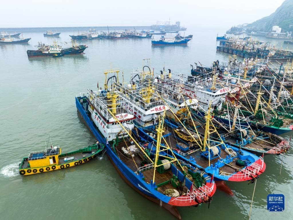 當(dāng)日,在浙江省溫嶺市石塘鎮(zhèn),漁船陸續(xù)進(jìn)港???,迎接即將到來的休漁期。新華社發(fā)(徐偉杰攝)