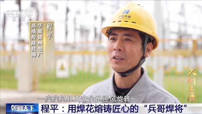 華能德州電廠高級焊接技師 程平:這十來年,新能源迎來了大的發(fā)展,每次看到經(jīng)過我的手,一座座風機更安全地迎風旋轉,能夠參與新能源的建設,為國家出一份力,見證它的發(fā)展進程,我感到自己非常驕傲也很自豪。