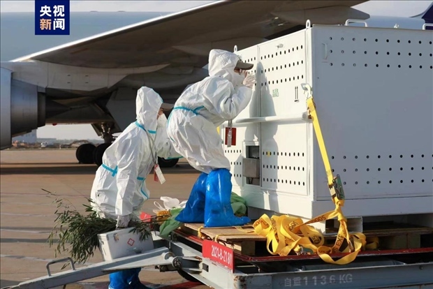 ·北京時(shí)間4月27日16時(shí)26分,23歲的旅美歸國大熊貓“丫丫”抵達(dá)上海浦東國際機(jī)場(chǎng),在中方獸醫(yī)和工作人員的陪護(hù)下,前往封閉隔離檢疫區(qū)。