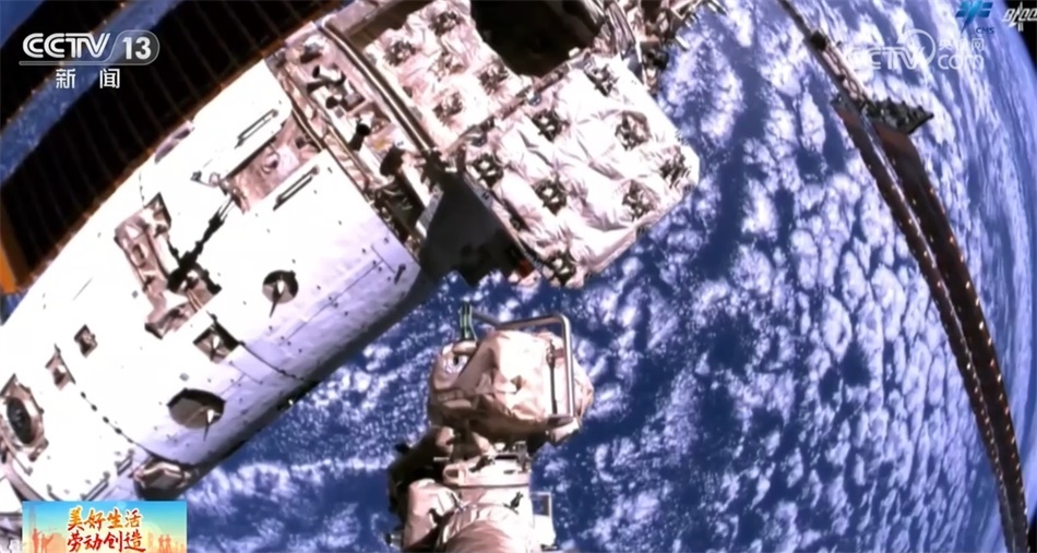 總臺(tái)央視記者 陶嘉樹:這個(gè)就是貨運(yùn)飛船的貨物艙,航天員所需的食物、水、實(shí)驗(yàn)設(shè)備等物資都是裝在這里“快遞”到空間站的。這個(gè)就是貨運(yùn)飛船與空間站的對(duì)接口,航天員就是通過這個(gè)對(duì)接口進(jìn)入貨運(yùn)飛船的。