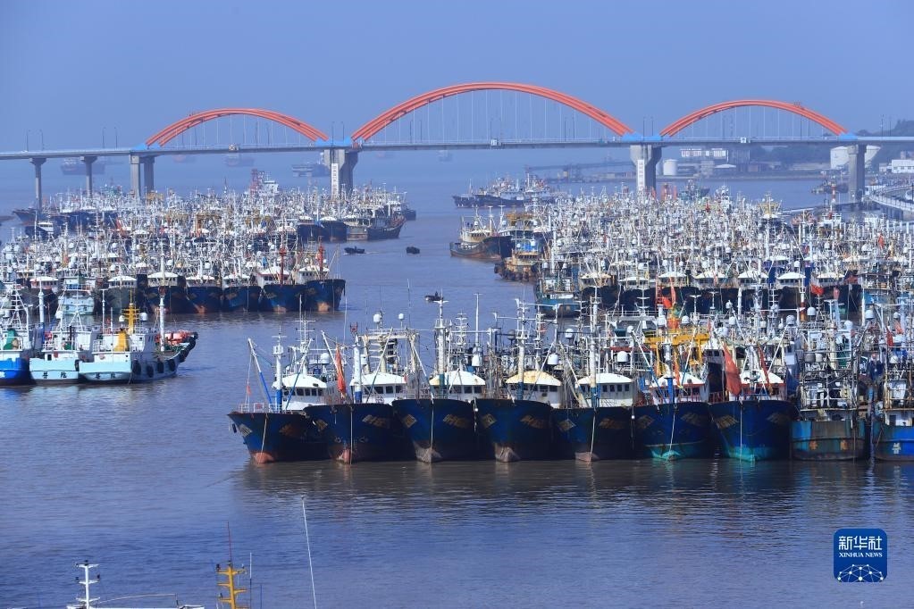 4月30日在浙江省舟山市普陀區(qū)沈家門漁港拍攝的回港停泊的漁船。 新華社發(fā)(邢守秒攝)