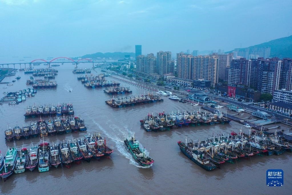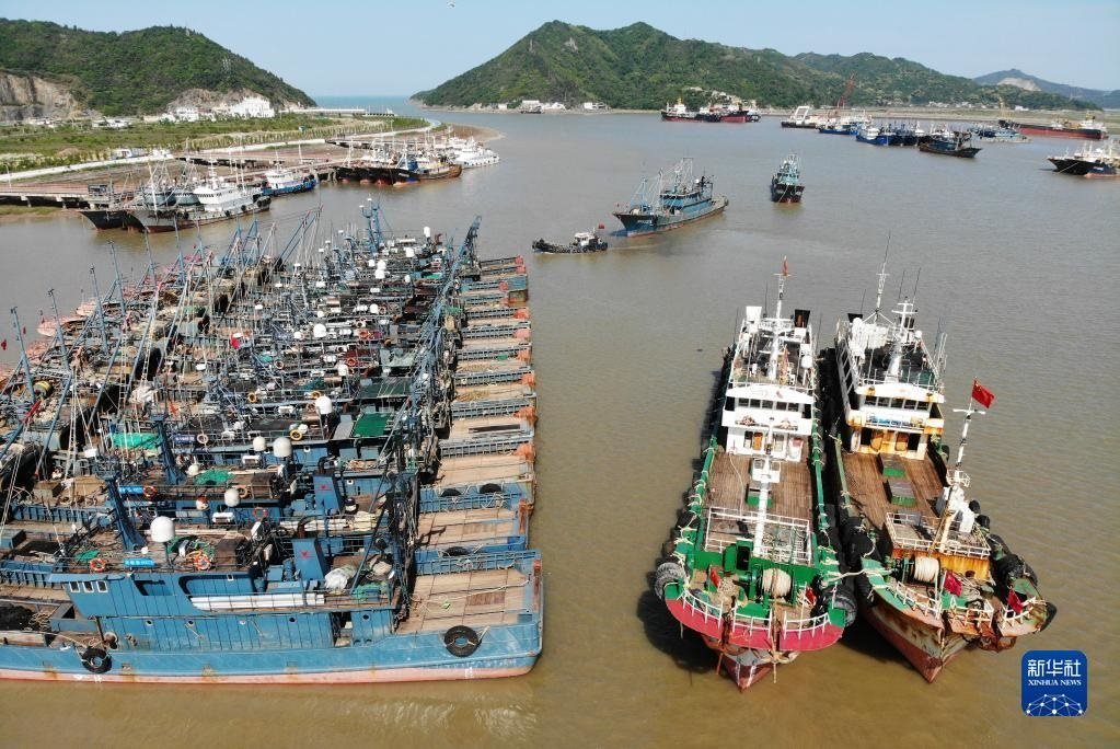 4月30日清晨,在浙江省舟山市普陀區(qū)沈家門漁港,漁船陸續(xù)進港準(zhǔn)備休漁(無人機照片)。