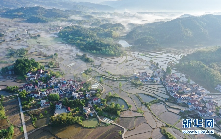 航拍安徽省宣城市旌德縣興隆鎮(zhèn)三山村梯田美景。新華網發(fā)(江建興 攝)